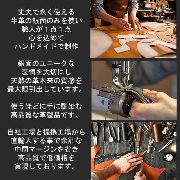 牛が生きた証であるキズ、血筋、シワ、黒点などを隠せる顔料や型押しなどの表面加工をせず、染料で仕上げておりますので、天然の革の素材の特性や個性的な表情を楽しんで頂けましたら幸いです。 表面の細かなシワやムラなどは使うほどに馴染んで目立たなくなります。