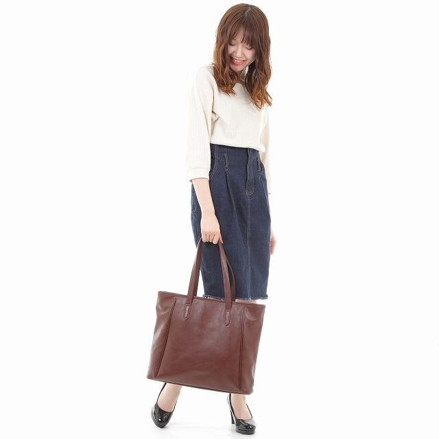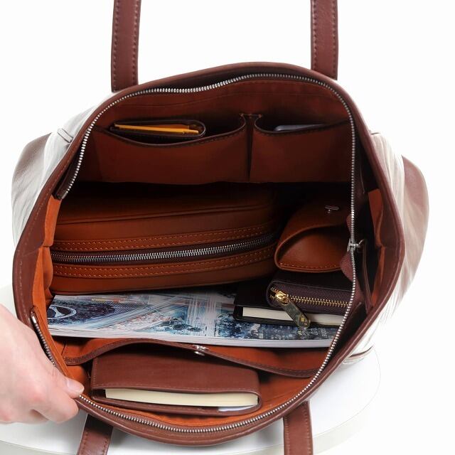 ファスナー付きトートバッグ シンプルなデザイン 大容量で、ビジネスにもカジュアルにもおしゃれな本革トートバッグです。