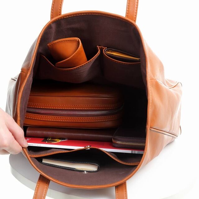 シンプルなデザイン 大容量で、ビジネスにもカジュアルにもおしゃれな本革トートバッグです。