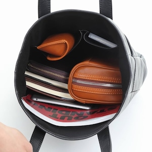 シンプルなデザインで、ビジネスにもカジュアルにもおしゃれな縦型トートバッグです。