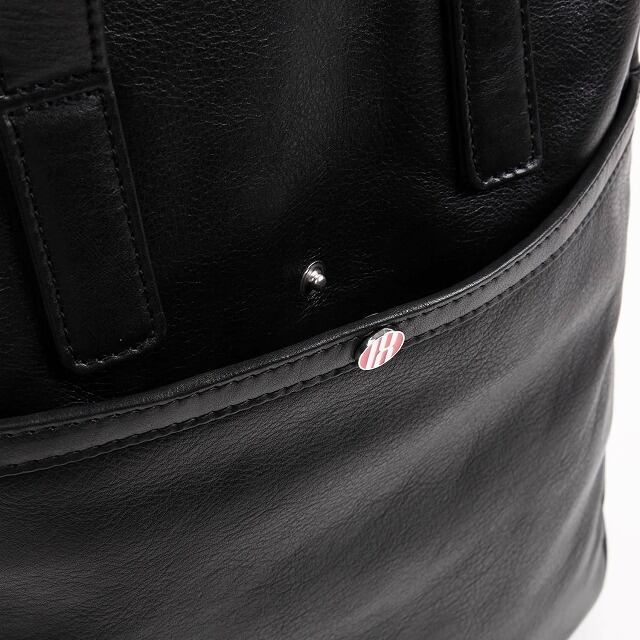 外装にはIHブランドロゴボタンの付いたポケット、内装にはレザーで綴じた3つの内ポケットが付いているので、スマートフォンや鍵、名刺入れなどサッと出し入れ出来ます。