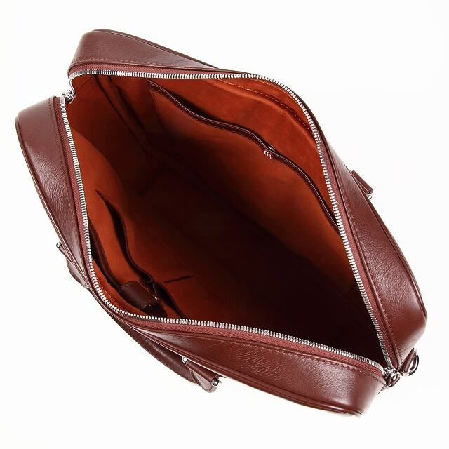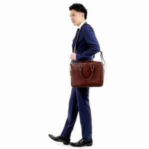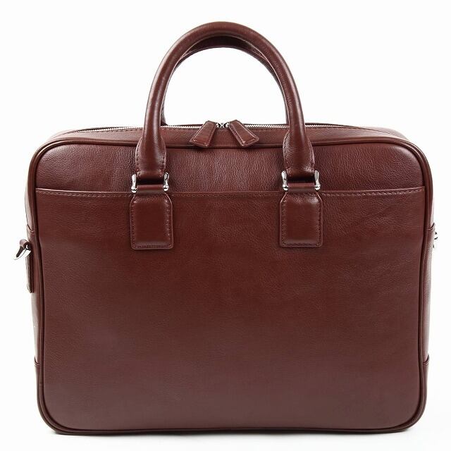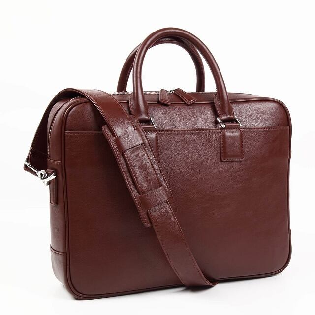丈夫で型崩れしにくいタンニンなめしの牛革銀面で作ったレザー製ショルダーストラップ付きビジネスバッグ。