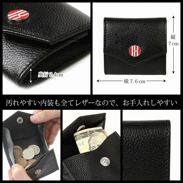本革(牛革銀面)。サイズ: 縦約7cm 横約7.6cm マチ約2.4cm