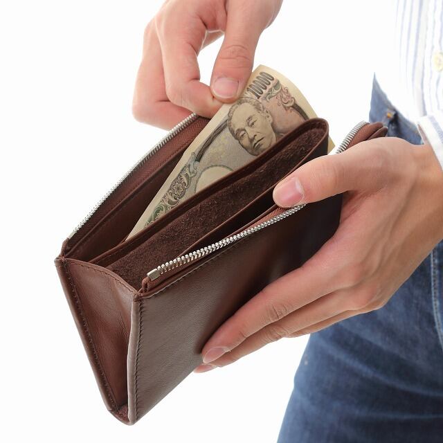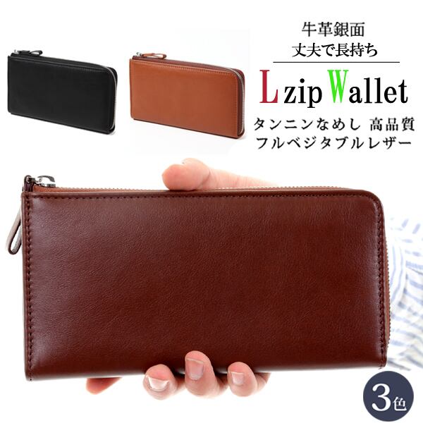 天然由来のタンニンなめし高品質レザーのL字ファスナー付き長財布です。