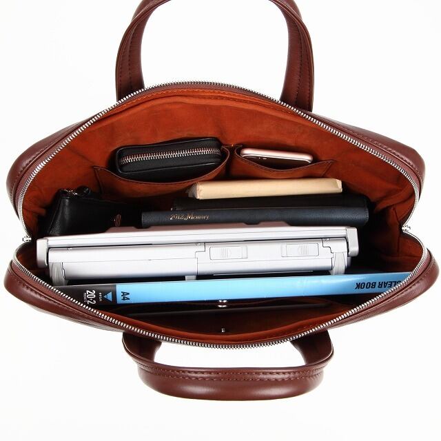 丈夫で型崩れしにくいタンニンなめしの牛革銀面で作ったビジネスバッグ。